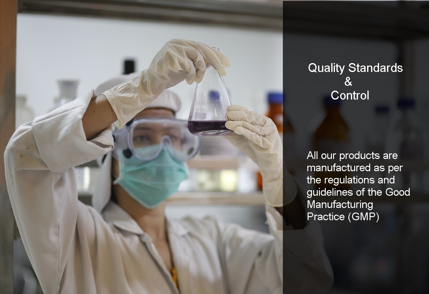 All our products are manufactured as per the regulations and guidelines of the Good Manufacturing Practice (GMP). We implement this through our quality management system that is based on planning, implementation and control which guarantees safety and reliability ensuring that only the finest quality pharmaceutical products roll out of our facility.